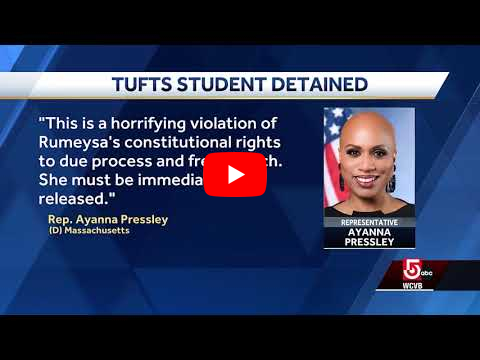 Keywords: Ayanna Pressley,Boston,F-1 visa,Massachusetts,Maura Healey,Michelle Wu,Rumeysa Ozturk,Tufts University,elizabeth warren,free speech,ice,somerville,wcvb