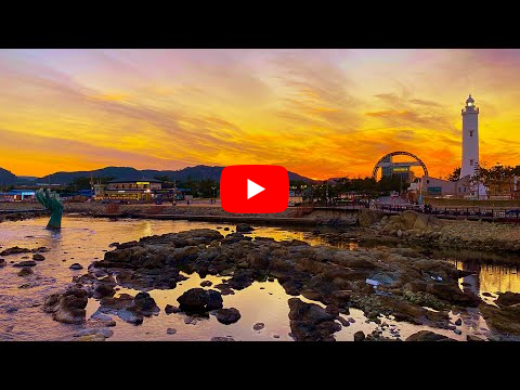 Korea - Red sunset at Homigot Sunrise Plaza in the fall | Pohang- 4K HDR view map location