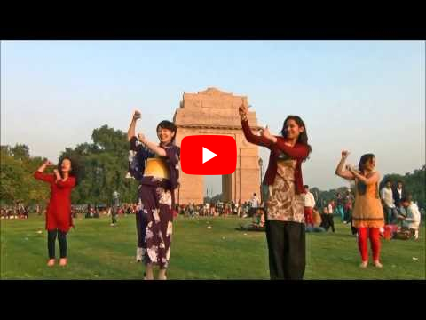 Dancing to "Koi suru Fortune Cookie" against India Gate, Delhi, India view map location