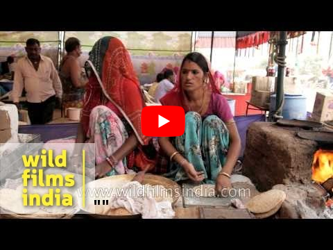 Keywords: women, making, chapattis, food, stall, pushkar, fair, rajasthan