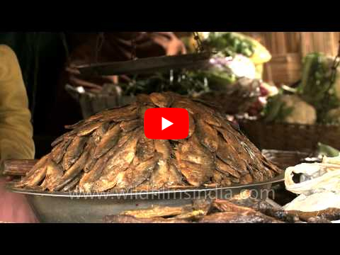 Dried and fermented fish sold at a vegetable market in Senapati, Manipur view map location