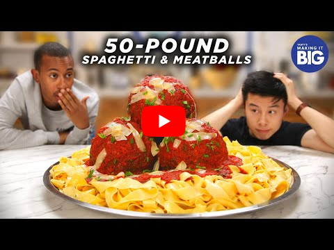 Keywords: made, giant, 50pound, spaghetti, meatballs, kalen, allen, kalen, reacts, tasty