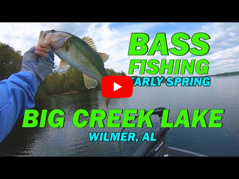 BASS FISHING/BIG CREEK LAKE with SURPRISE BITE ON A JERKBAIT! view map location